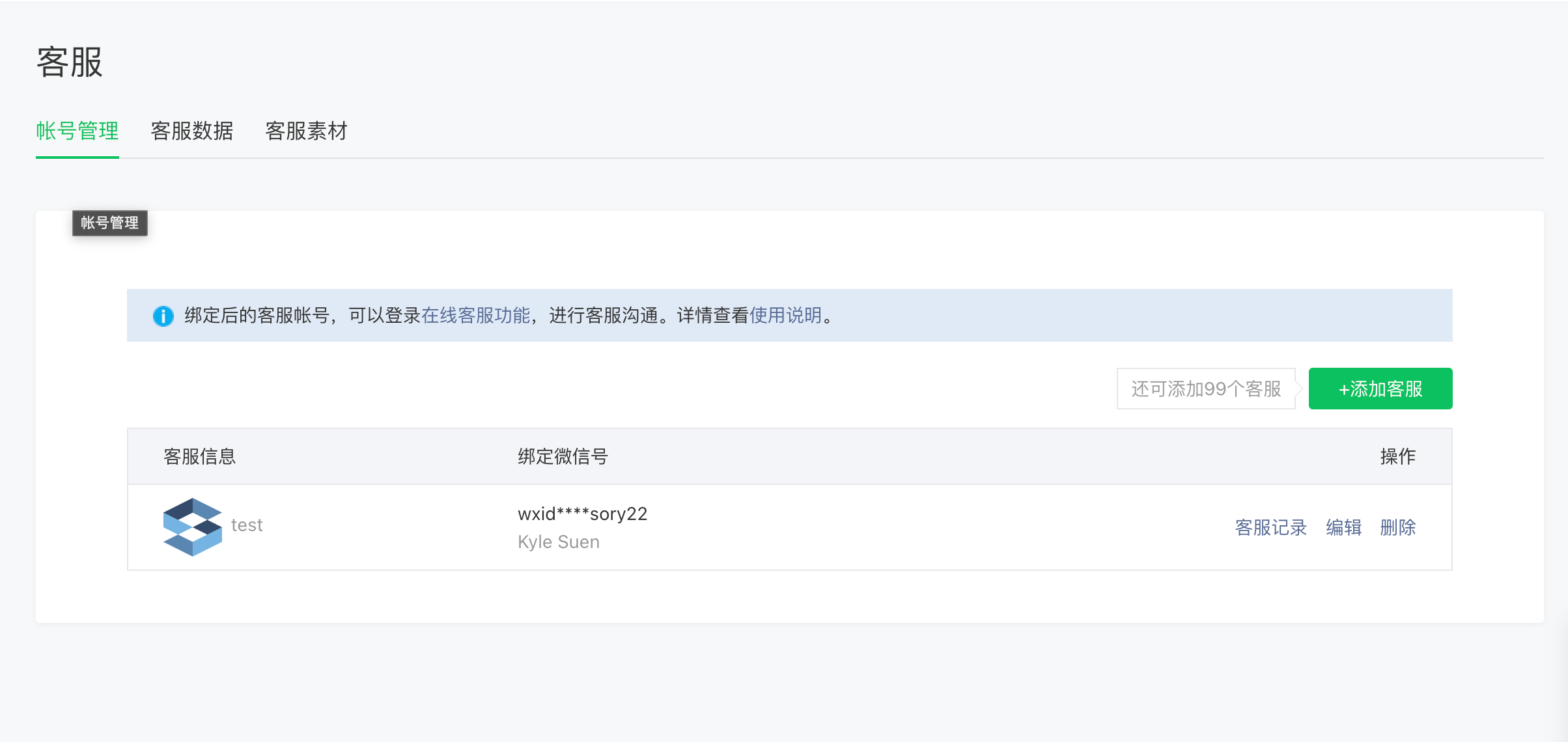 你好,请使用线上真实客服信息调用测试,不要使用这个测试接口,不是真实信息会有异常。