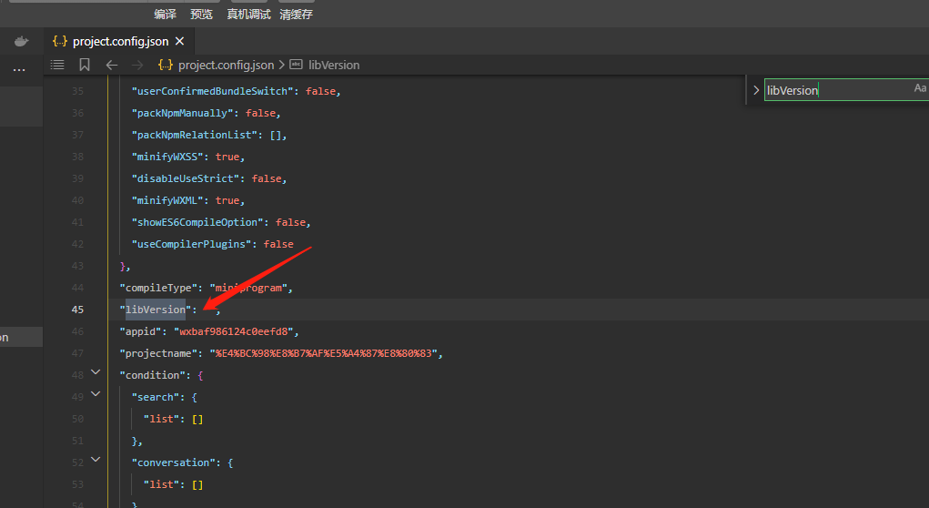 麻烦确认一下小程序源码项目下 project.config.json中的libVersion字段是什么