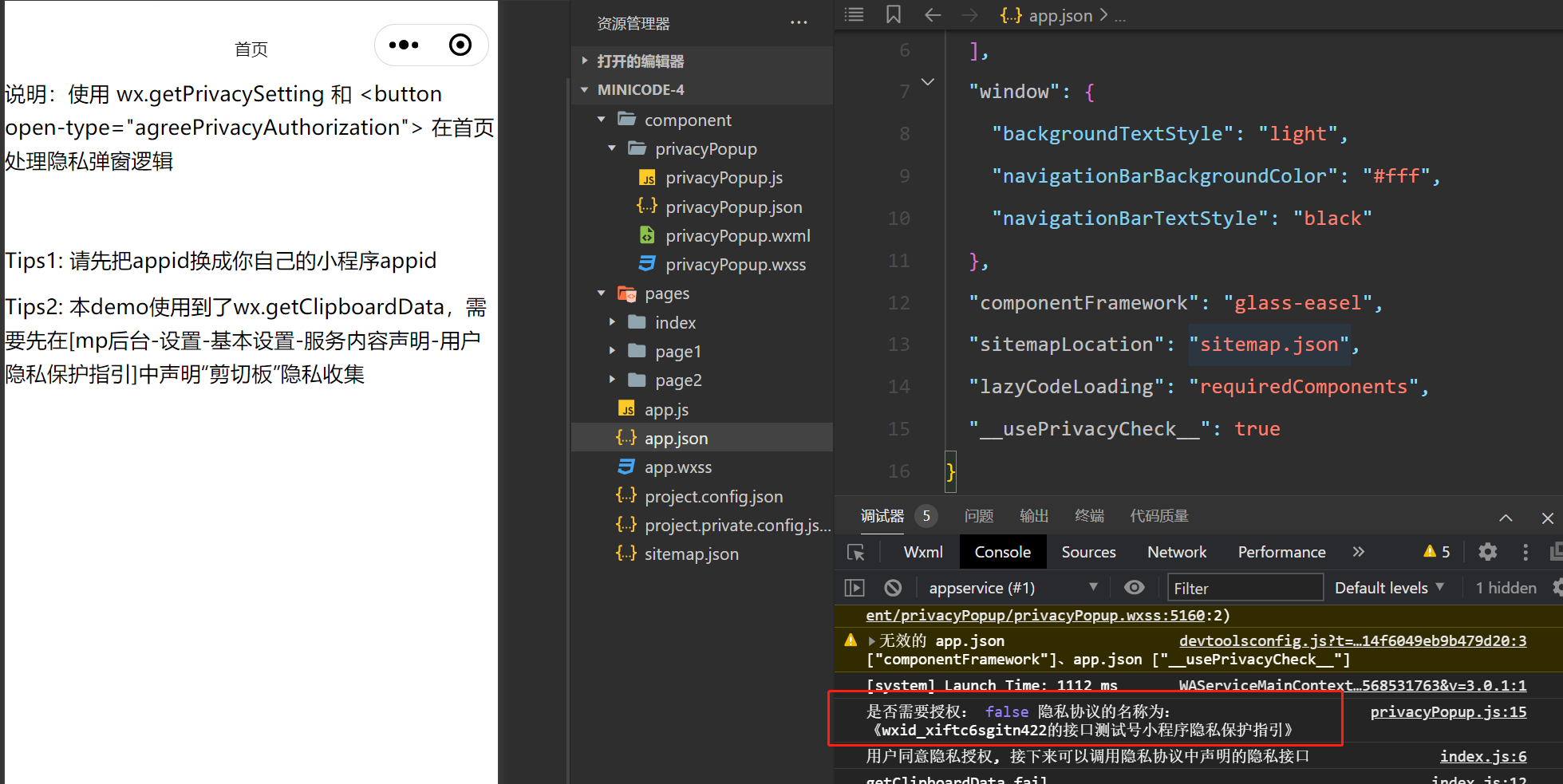 3,必须设置app.json里的__usePrivacyCheck__: true