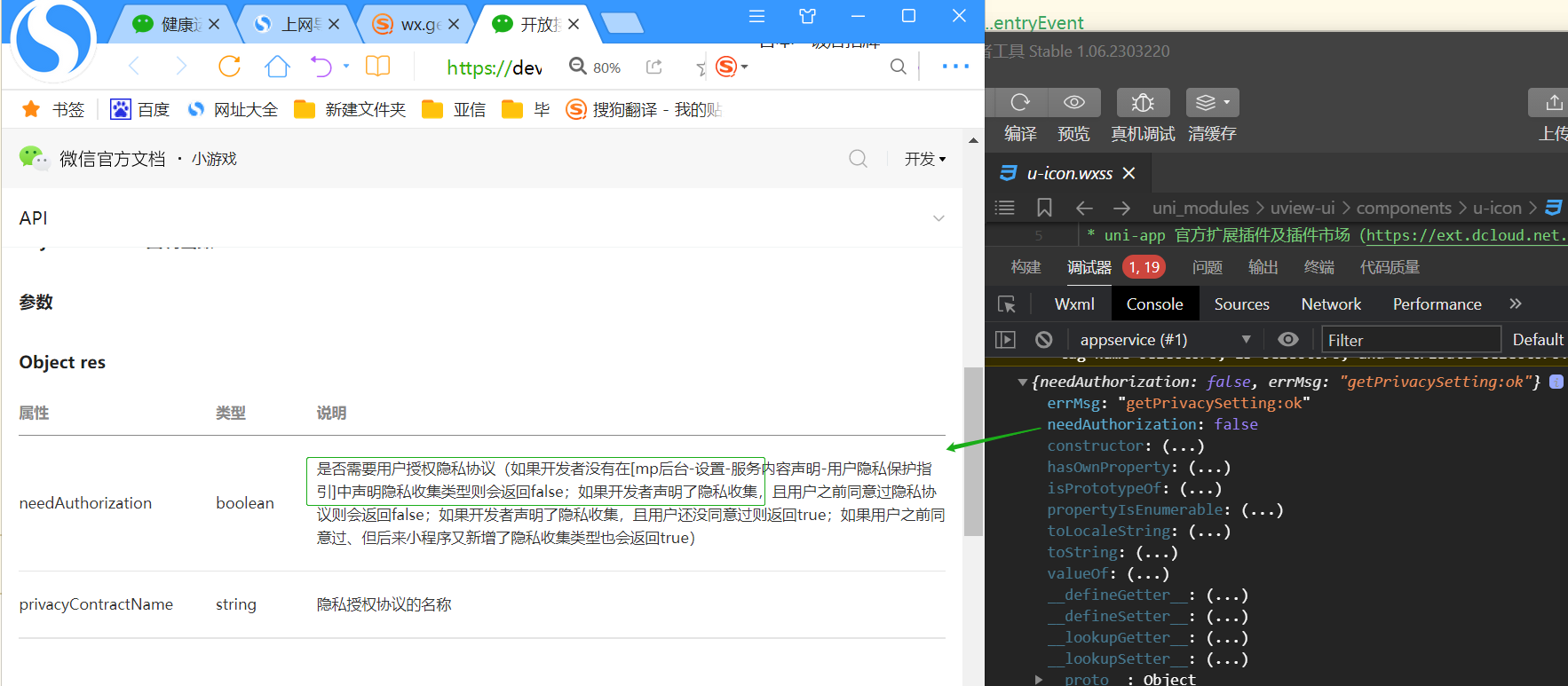 8.29返回false,没有名称字段+1,如果配置开发者工具的调试基础库改为3.0.0,app.json里加上"__usePrivacyCheck__": true,那不是官方文档修改前的吗,目前自己的基础库是3.0.0,参考官方文档不需要加app。json的