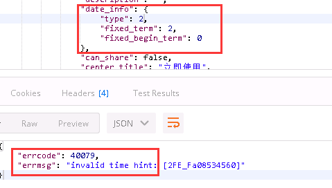 {"errcode": 40079,"errmsg":"invalid time hint: [NTnbNA07045320]"}您好,您的跟时间有关的字段都没有写。