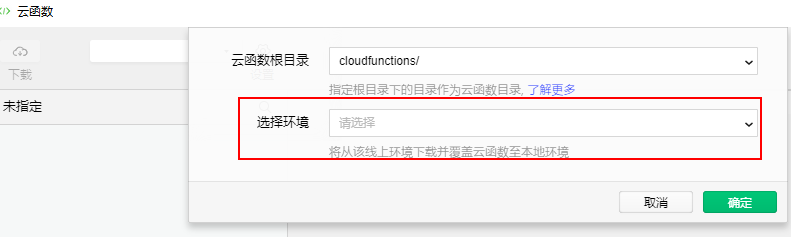 要先在云开发里面创建一个环境,再点击cloudfunctions就可以同步了