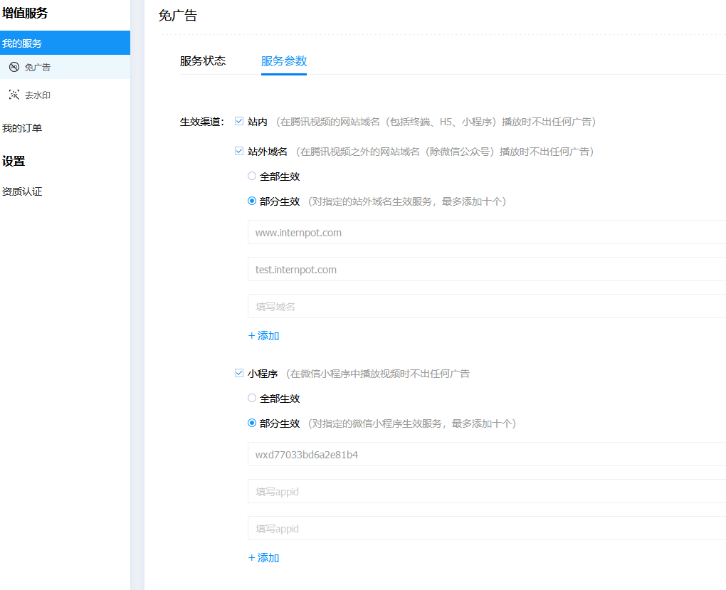 你好,是购买了哪种免广告呢,域名/vid还是其他的?