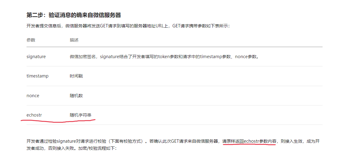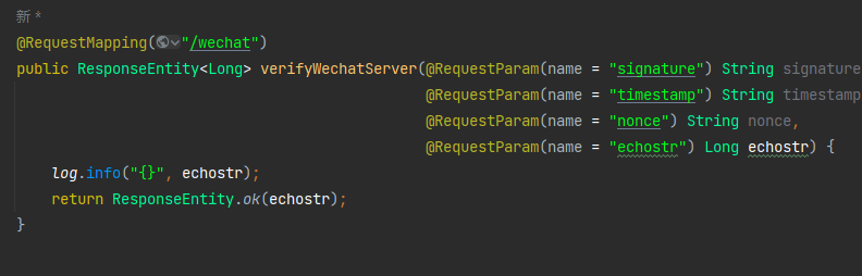 图中 echostr 实际为 Long 类型,返回字符串类型不成功。返回Long类型可以成功。导致学习过程中产生误导。