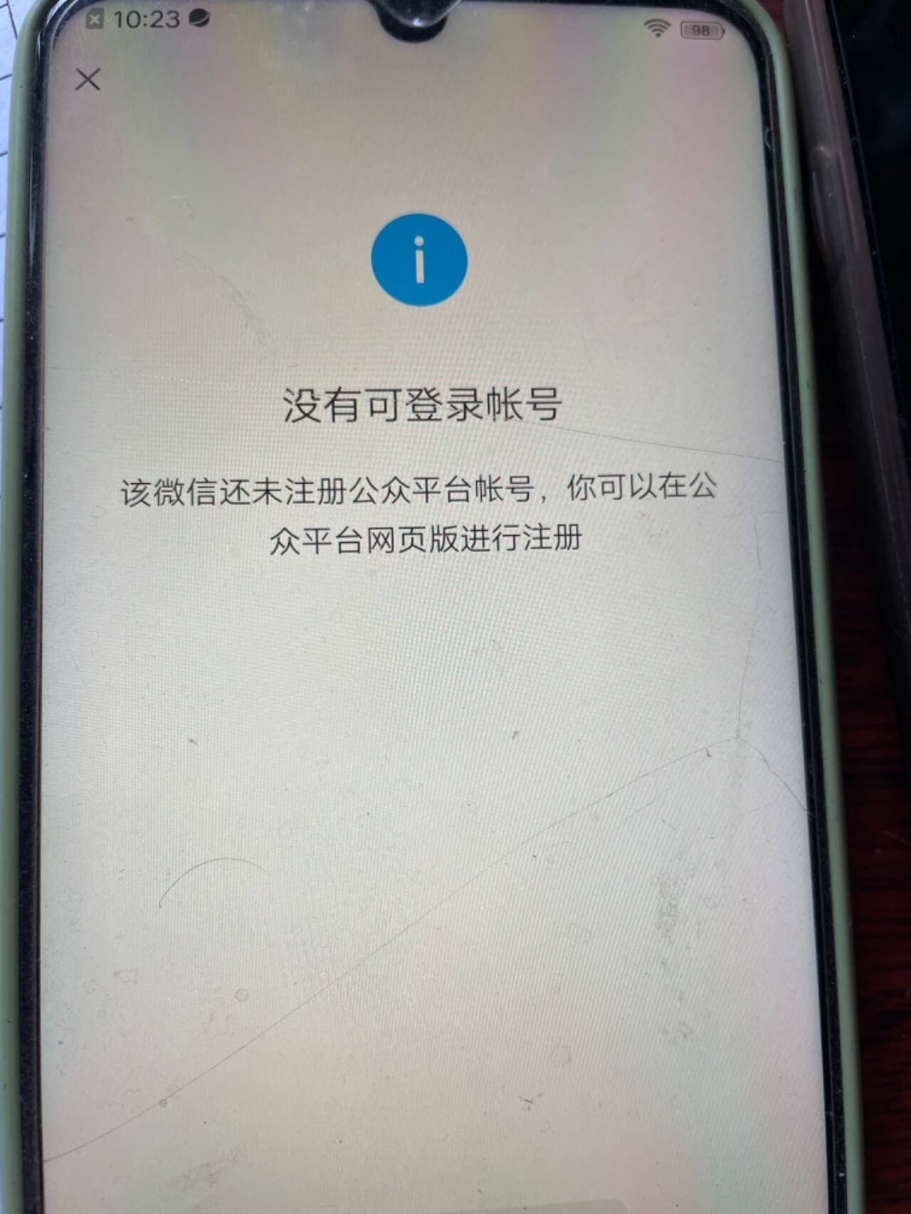 你可以使用扫码的微信前往公众号「公众平台安全助手」->绑定查询->微信号绑定帐号,查看是否有绑定帐号。