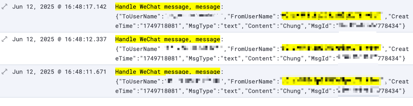 一模一样的消息ID和创建时间,会在webhook里收到多次。