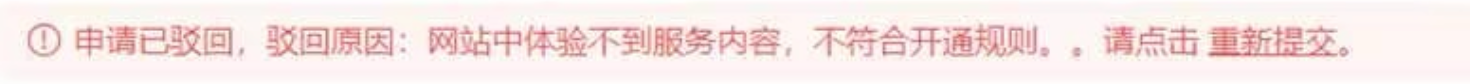 我被驳回5次了,真实店大欺客,不给具体原因,他们给的参考网站上让提供的都提供了,还是驳回,原因:“申请已驳回,驳回原因:①网站中体验不到服务内容,不符合开通规则。需要在网站中体验到购买课程后提供的相应服务,如无法在网站中体验到服务,请使用其他支付方式。②H5支付域名网页经营内容不完善,请修改后再提交。如网站还在开发中,请开发完成后再提交。具体规则请参考https:/kf.gg.com/fag/211124JbyEFj211124aeY77Ehtml。请点击重新提交”