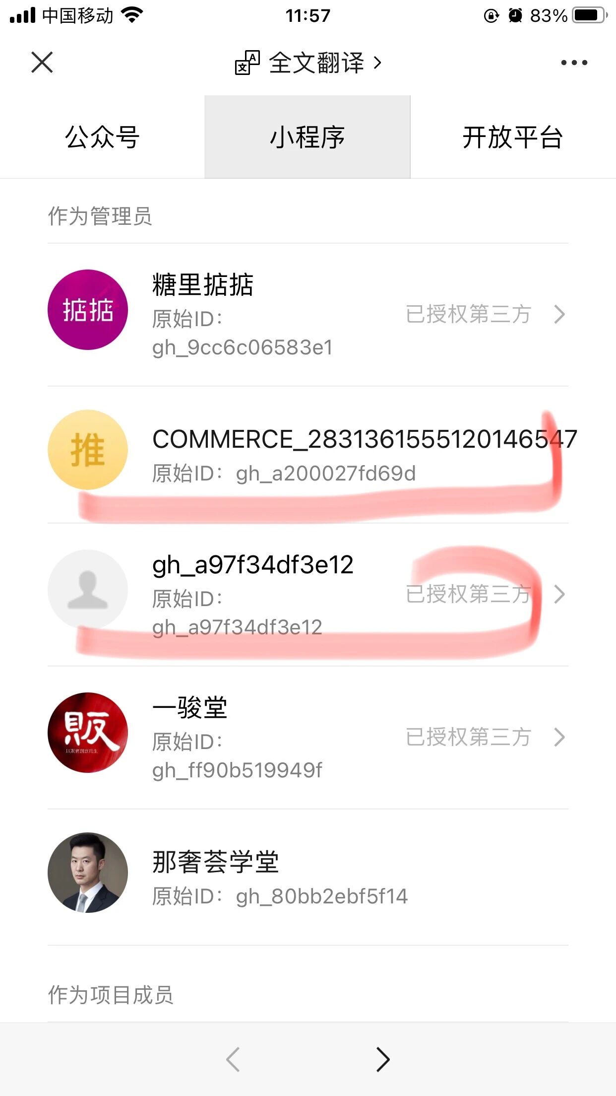 请问这两个小程序是什么,不知道什么时候绑定的。同时,我确定个人没有绑定