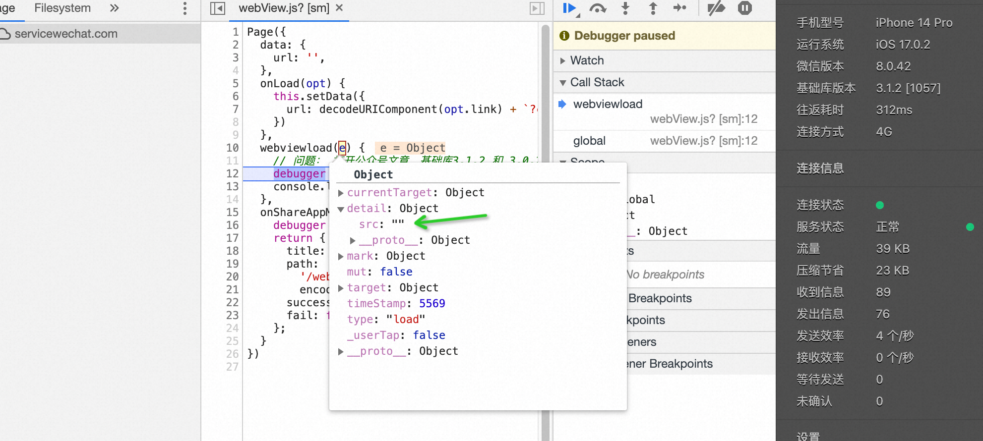 问题描述:【打开公众号文章 web-view组件 bindload拿到的e.detail.src为空, 非公众号文章H5地址3.0.2 3.1.2 拿到没问题】