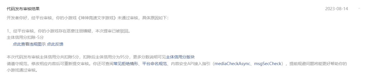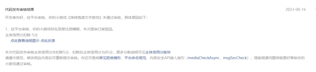 三次审核未通过,总共扣了10分,为什么信用分还剩85分??