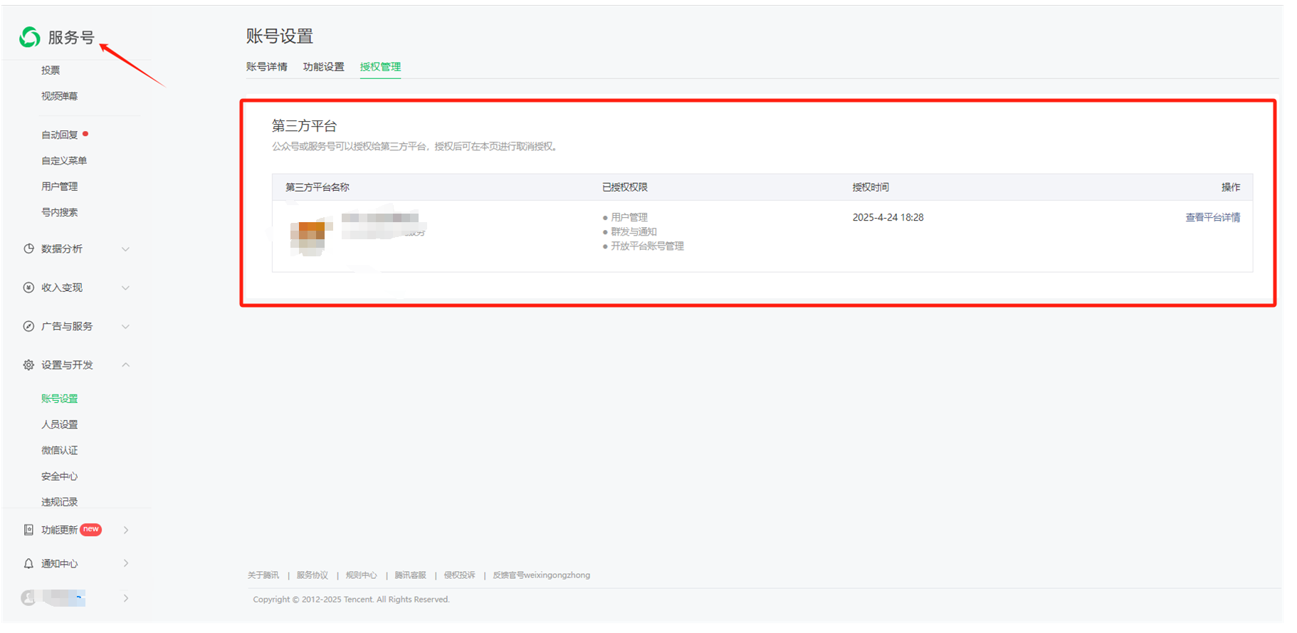 你好,wx02719a424805ed1c授权给第三方平台wxc5d346587508cb6b时间点确实是:2025-4-24 18:28,核查也是正常推送到此地址 https://changxiaoer.cn/component/wxMpticket 的,请仔细检查服务器消息推送,可以尝试触发更新授权来重新获取最新授权更新通知事件