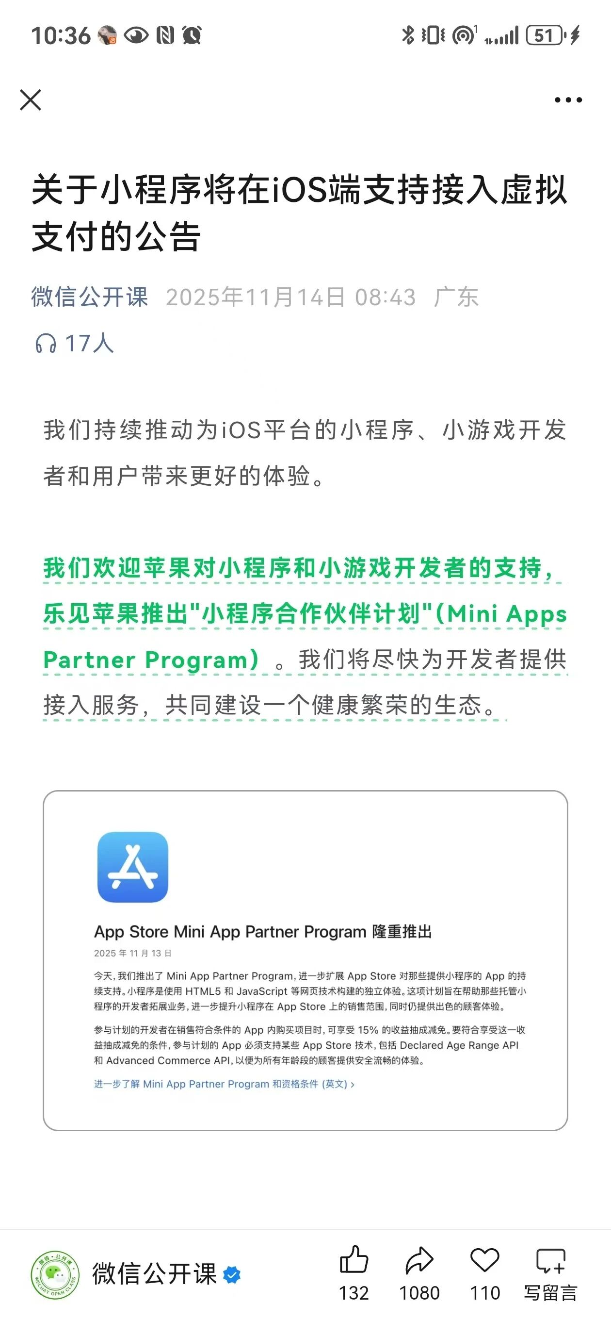你好,今天微信发了ios虚拟支付的通知,请问我们这边后面需要如何处理呀,是直接把ios支付链路换成安卓类似的支付链路?还是等官方的下一步通知走苹果的IAP呀