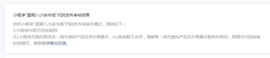 你好,经核实,你方小程序页面涉及提供虚拟商品/服务,且页面含有”购买/会员/订阅“类指引性功能或按钮,IOS系统暂不支持,请自查代码,确保移除上述内容后,再提交代码审核。