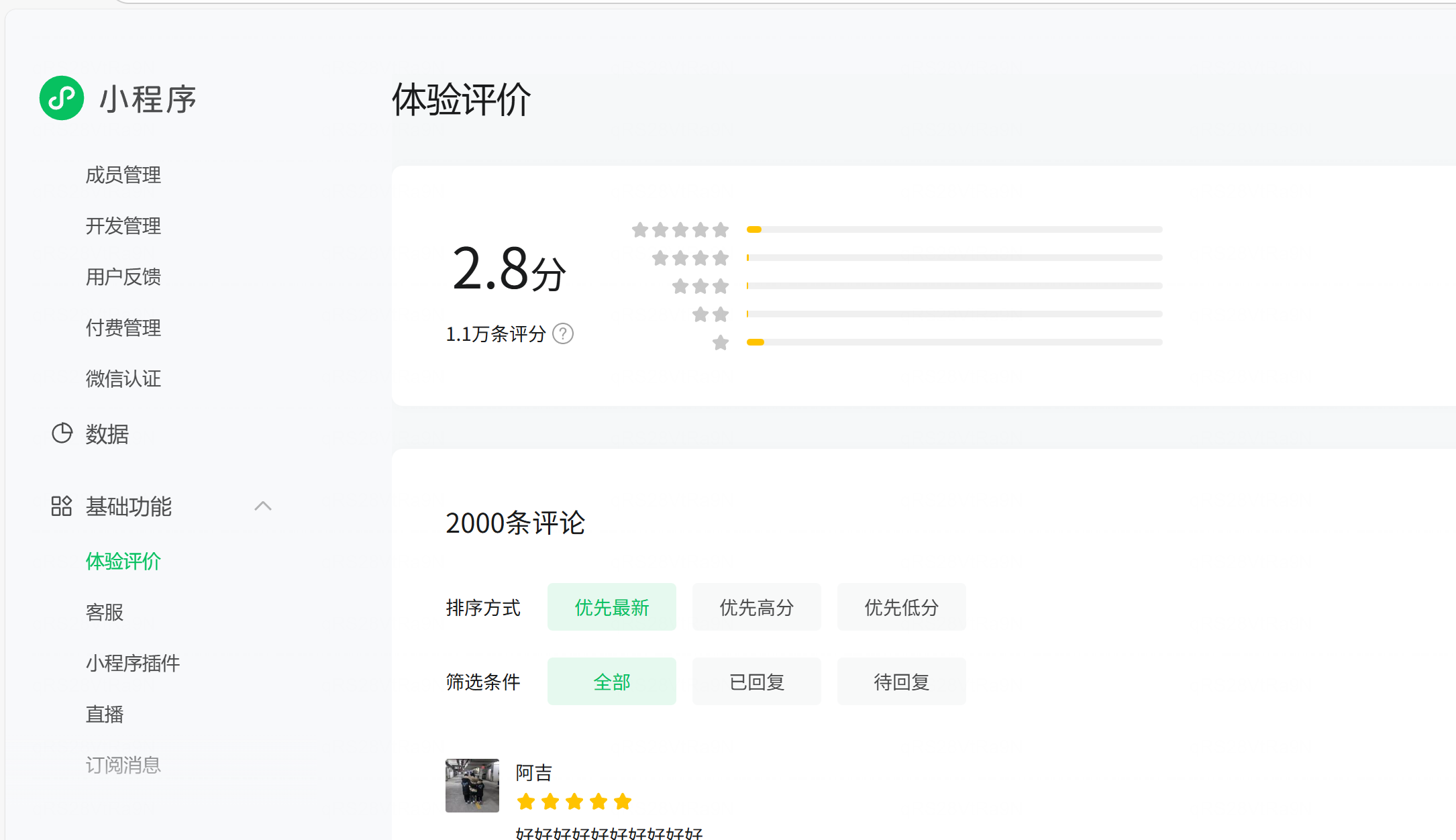 评价系统已经下线了,后台存留的只是历史记录,实际客户端中已经不显示了