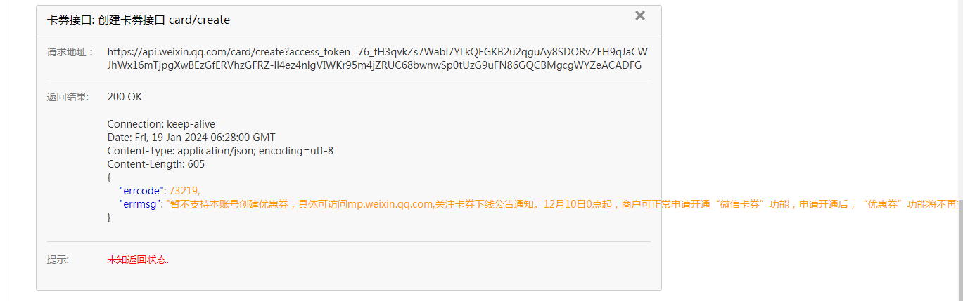 目前需求是创建自定义满减劵、优惠劵等添加到卡包里面,但是使用wx.addCard后台创建不成功,cardid无效,后台创建cardid返回报错。