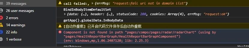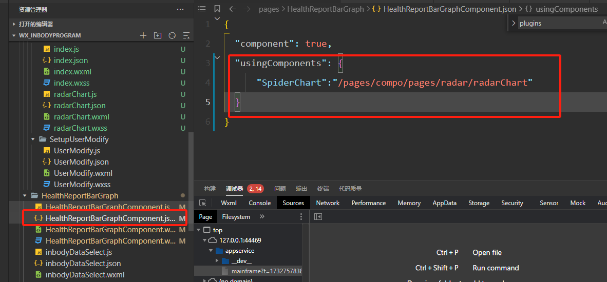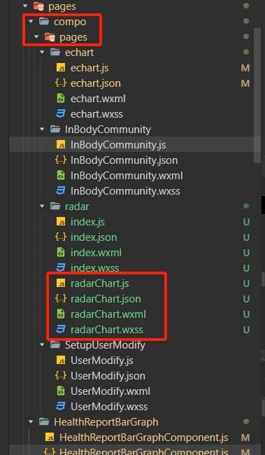 我把组件放在分包里,然后usingComponents调用,然后就报错 Component is not found in path "pages/compo/pages/radar/radarChart" (using by "pages/HealthReportBarGraph/HealthReportBarGraphComponent") ,但是我分包里明明有这个文件啊,不知道为什么无法找到该文件?我把相关的内容都截图放上去了,麻烦帮我看看,谢谢