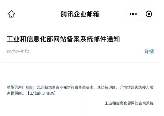 在小程序后台--设置--备案那,点击驳回原因,可以查看到被驳回原因并重新备案