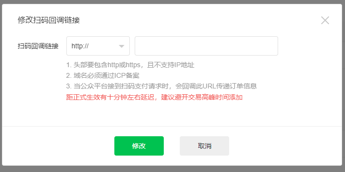 点击修改回调链接后直接可以设置回调,但不显示原来的回调页面是什么。