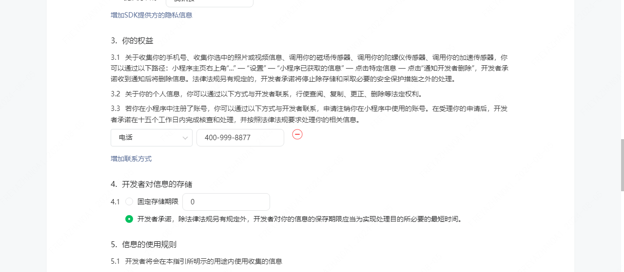 你好,建议尝试在小程序提审页面修改用户保护指引并提交版本审核(入口:管理—版本管理—提交代码审核—信息填写页面)