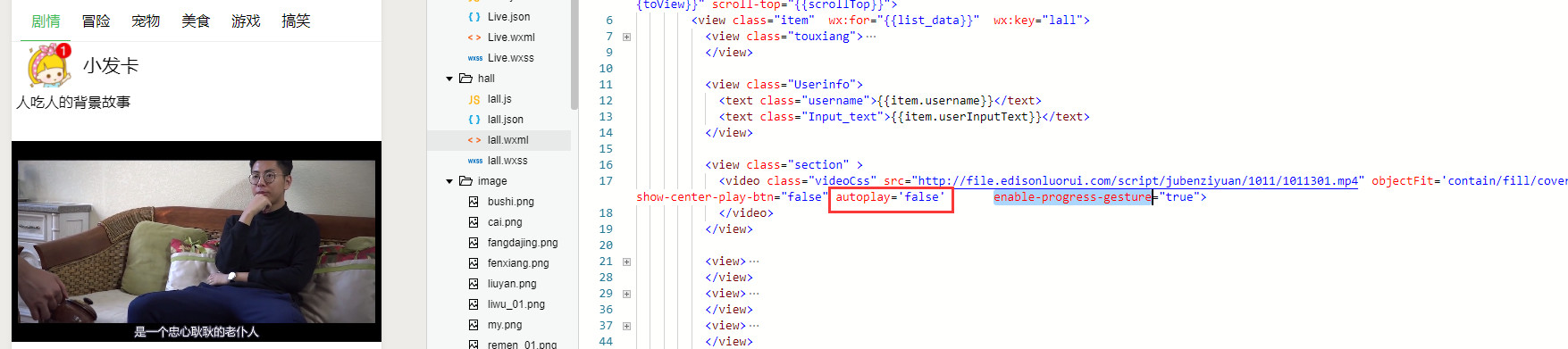 你好,autoplay=‘{{false}}’ 这样写的