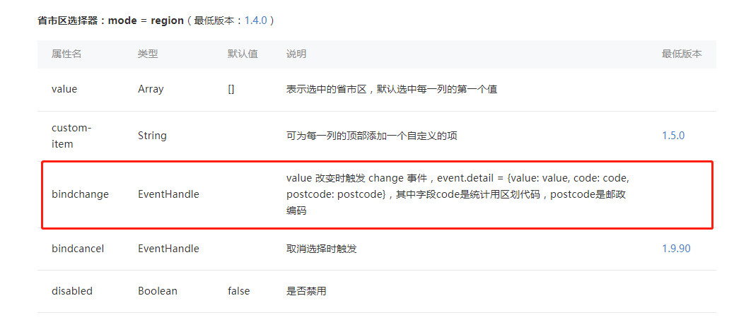 官方文档提到 bindchange 会返回一个 code 但是发现切换省市之后,只返回了 value,并没有返回 code