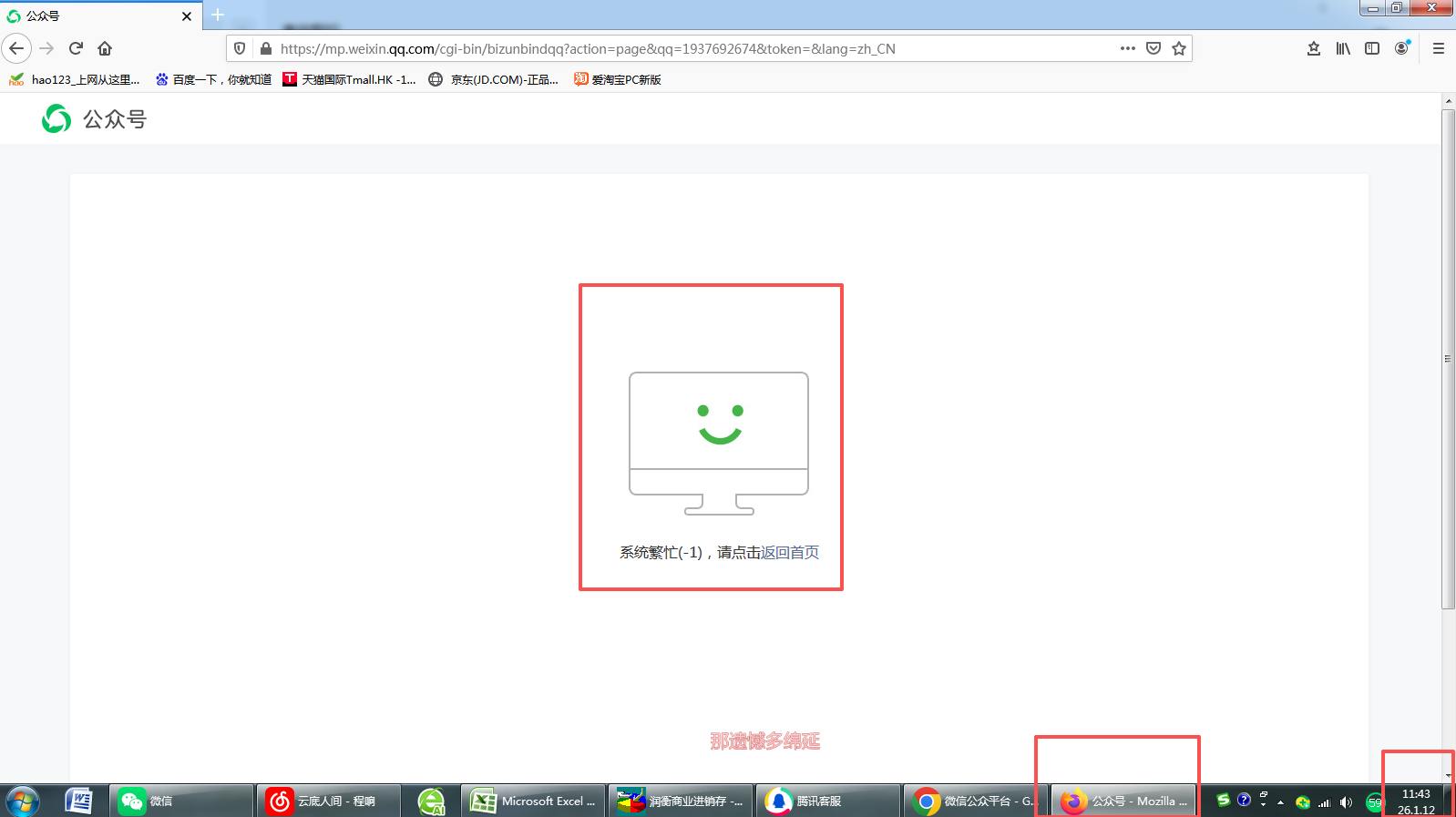 扫二维码进入公司公众号后台,但出现说需要绑定邮箱,点击确认键后,又出现“系统繁忙”,一直操作不了。这是怎么回事?联系腾讯客服又没人理会。