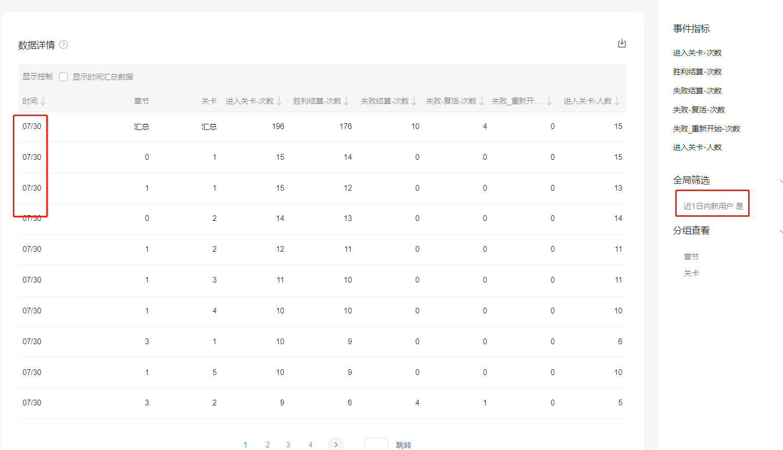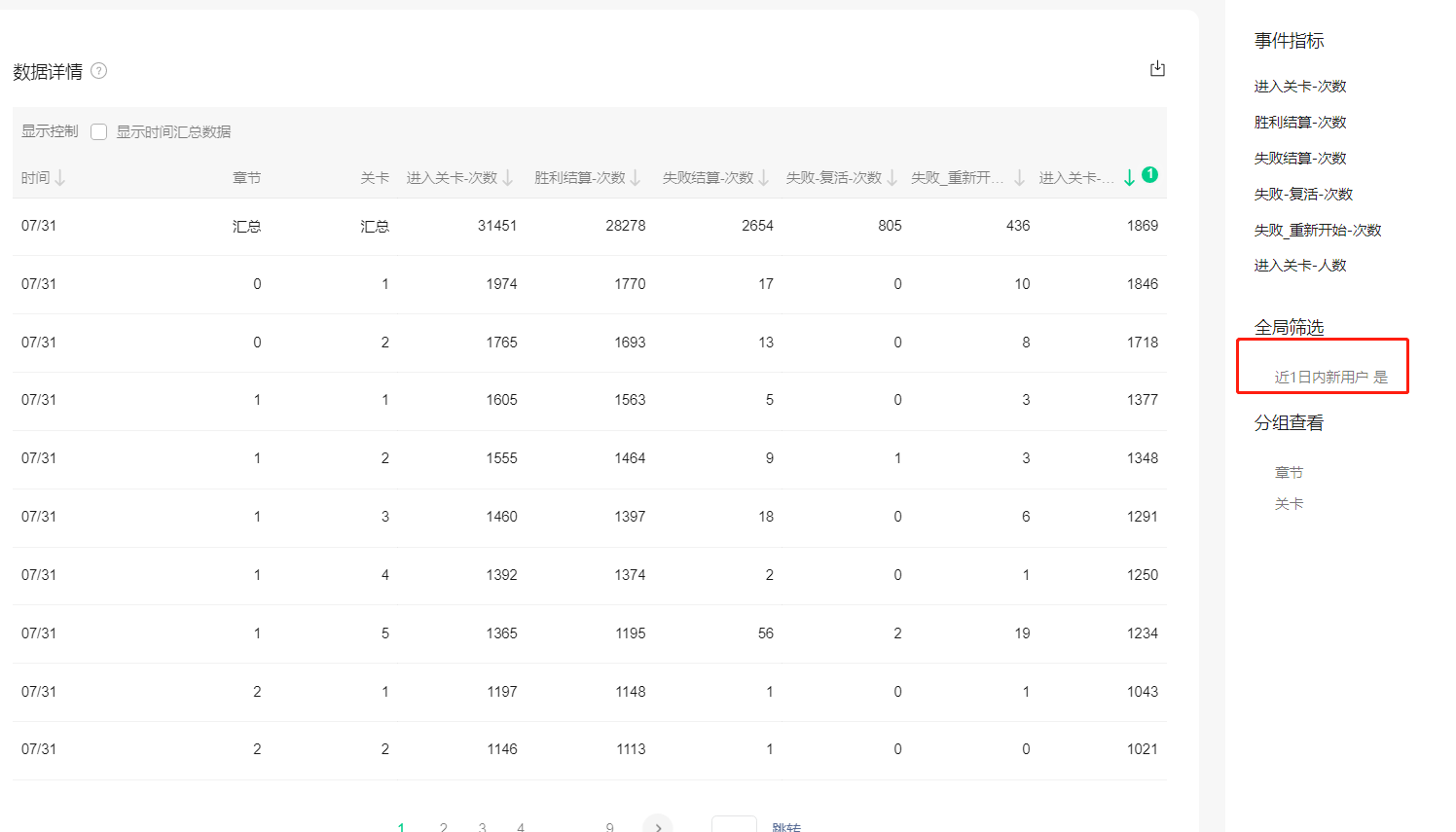下面赋了两张图,8月1号的时候查询7月31号的数据还算正常。查7月30号的数据按这个值来筛选就不符合当天的新增玩家了。所以这个筛选并不是按照筛选日期那天开始的新用户,那么如果我想要查询那天的新增用户情况,我该怎么办?