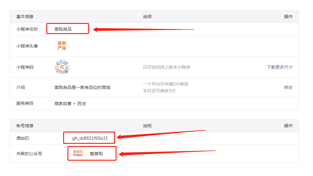 5、我的需求,如果能找回这个小程序“喜购良品gh_ddf651f69a31”更好,如果不能找回取消关联这个小程序。