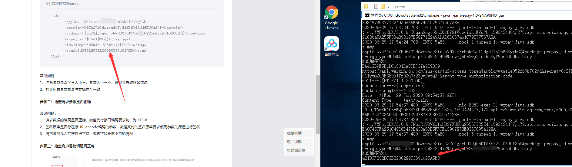 1、使用签名检查工具(https://pay.weixin.qq.com/wiki/doc/api/micropay.php?chapter=20_1)校验签名算法是否有误
