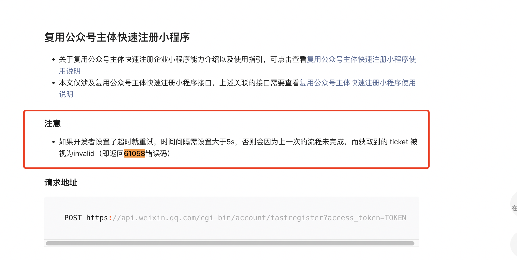 req:[{"ticket":"xxxxxxxxxxxxxxxxxxxxxxxxxxxxxx"}], rsp:{"errcode":61058,"errmsg":"invalid ticket rid: 67369f21-1be22cb5-766b4398"}