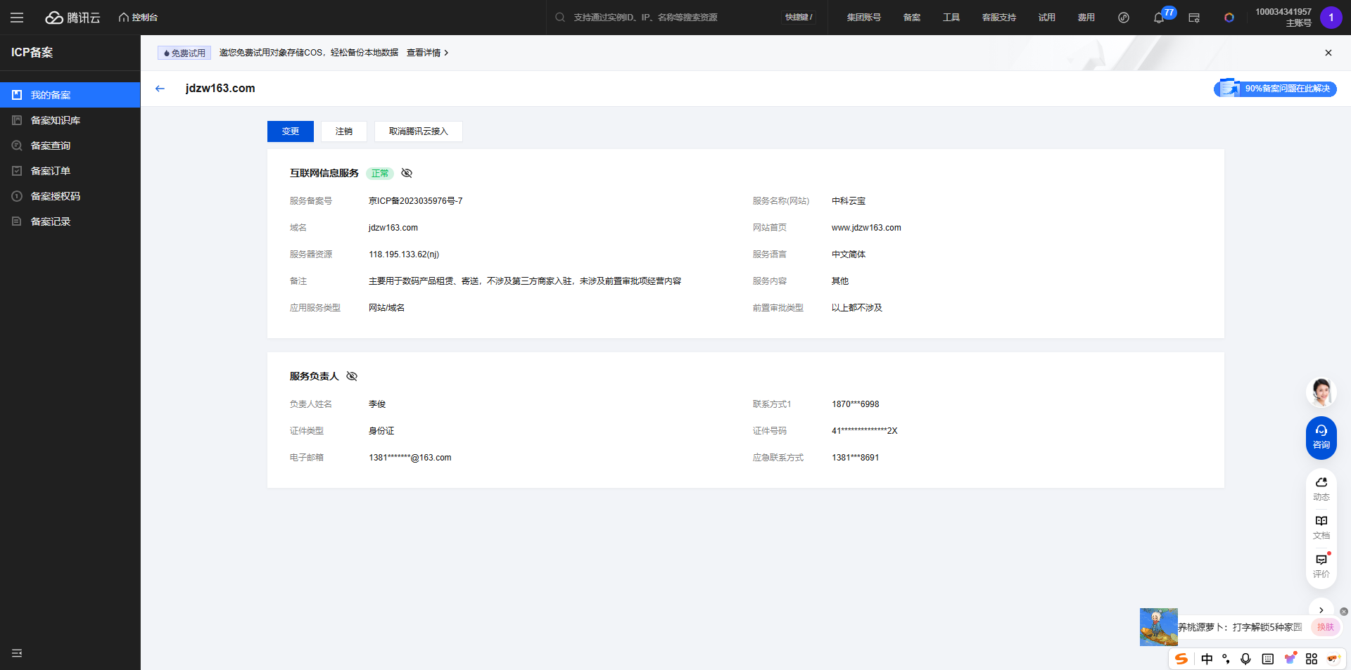 你好域名(https://h5.jdzw163.com/jdzwxxj)在腾讯云注册并备案通过,服务器也在腾讯云,浏览器访问正常,我是网站开发者,访问时间如图微信访问网站出现“无法确认该网页的安全性,请谨慎访问”,经检查网页里没有不安全的内容,请核实后帮忙解除拦截,谢谢!