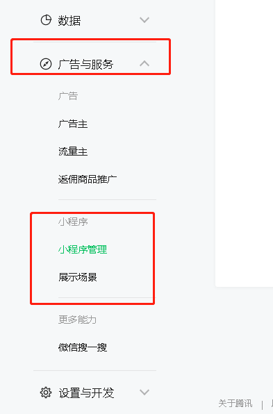 广告与服务菜单下面小程序
