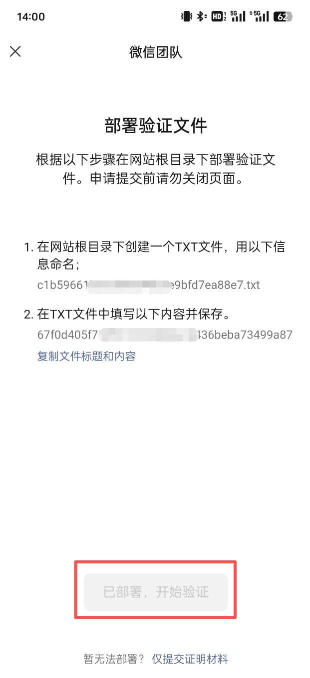 1、第一种方法-根目录上传对应认证文件,按钮还是不让点击,