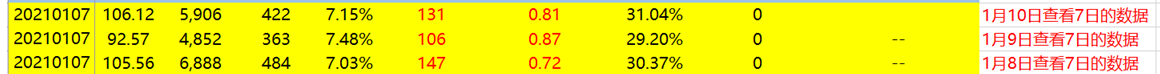 问题描述:在1月8号,9号,10号查看广告主后台的数据发现1月7号广告的曝光、点击和转化数据都不一样,而且有较大差距,如下图: