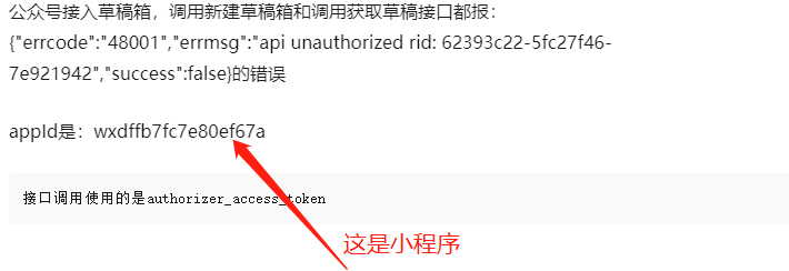 公众号接入草稿箱,调用新建草稿箱和调用获取草稿接口都报:{"errcode":"48001","errmsg":"api unauthorized rid: 62393c22-5fc27f46-7e921942","success":false}的错误