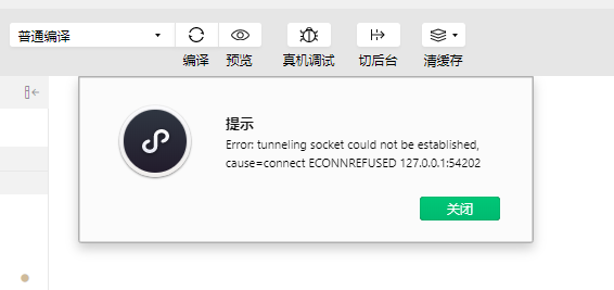 复现过程:关闭上一次真机调试,改过代码再点,有时就会出这个,每次出了这个问题,就需要关机重启,重启开发者工具不一定好使