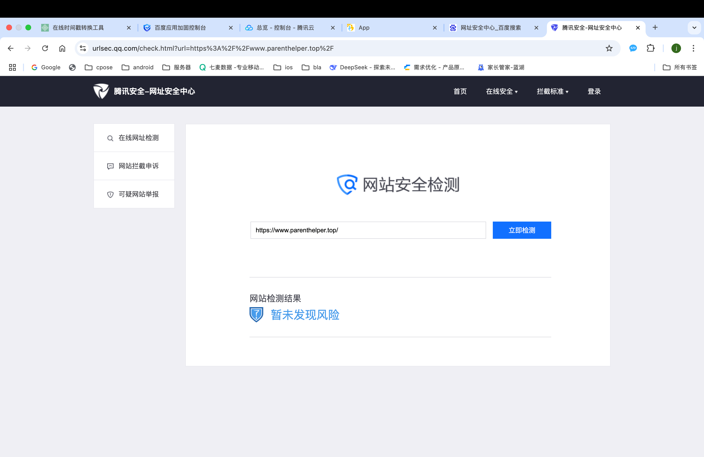 https://www.parenthelper.top/ 我司官网 手续齐全,备案手续也有,微信浏览器拦截说不安全,导出反馈申诉也没有个结果?