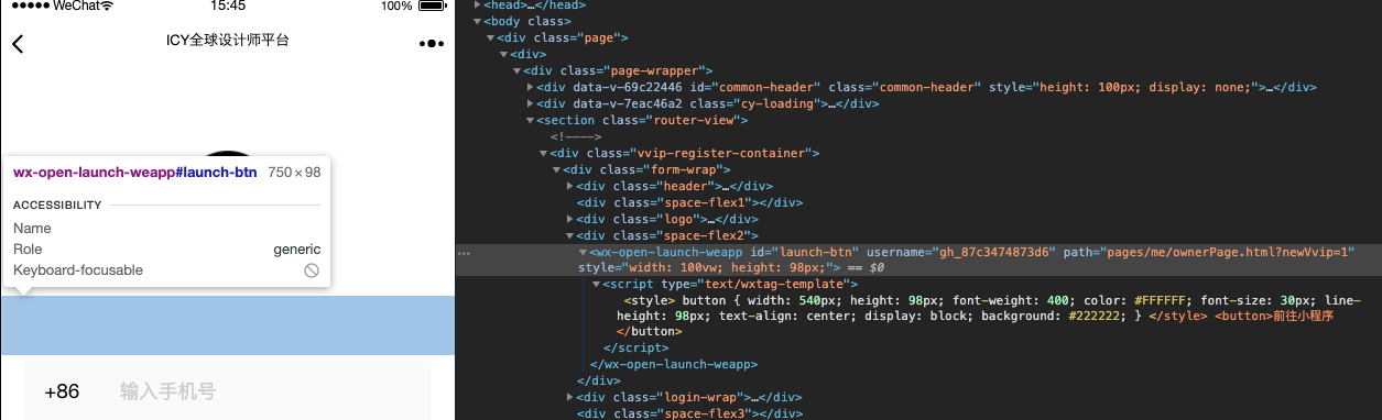 2.跳转到小程序的按钮正常显示了,但是手机微信浏览器里点击没有反应,也没有报错。