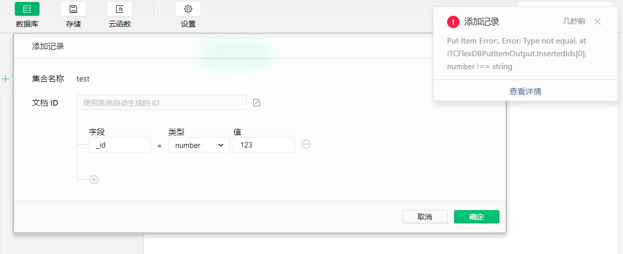 _id是number时候,控制台添加报错,但是可以添加进去。然后控制台查询的查不到东西,删也删不掉这条记录。。。。_id是string时候没问题