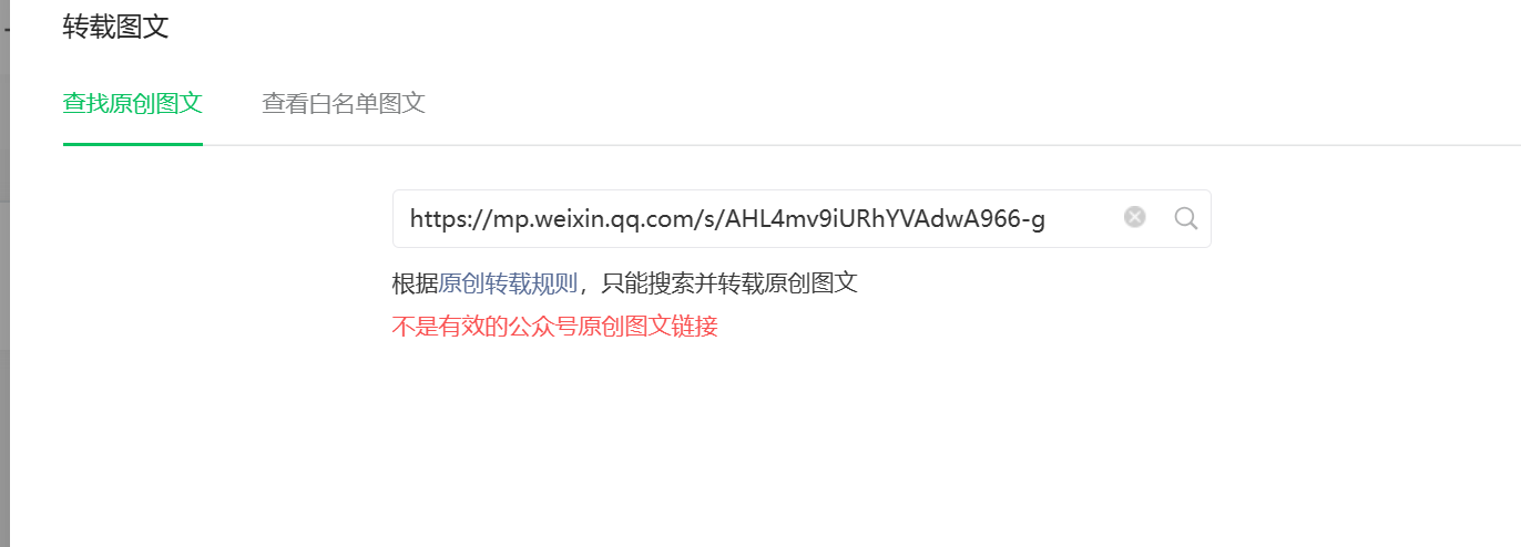 复制粘贴链接,显示:不是有效的公众号原创图文链接。