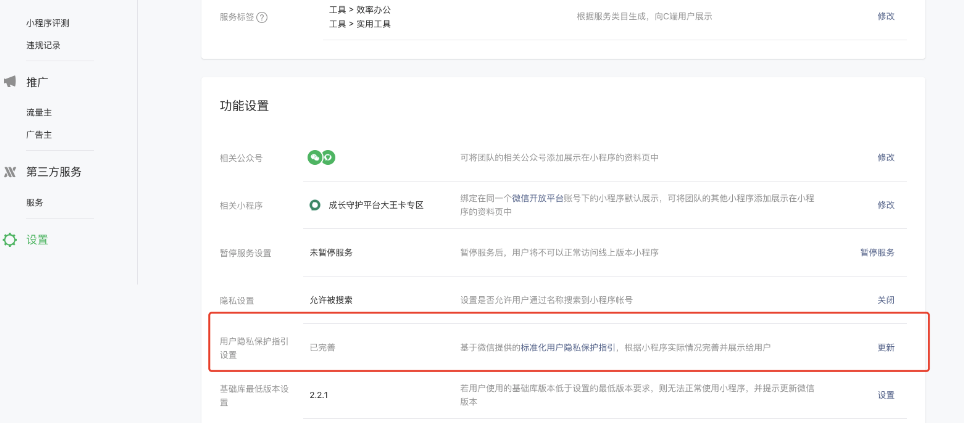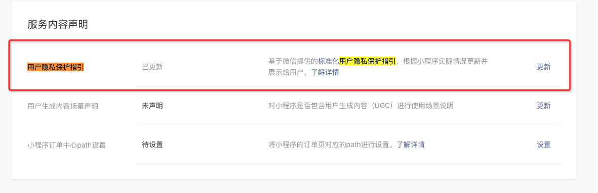 收到了一条信息:内容为:为规范开发者的用户个人信息处理行为,保障用户合法权益,自2023年9月15日起,对于涉及处理用户个人信息的小程序开发者,微信要求,仅当开发者主动向平台同步用户已阅读并同意了小程序的隐私保护指引等信息处理规则后,方可调用微信提供的隐私接口。如未在规定时间内完成操作,后续代码提审与线上版本相应能力将受到影响,请问这个需要如何修改?