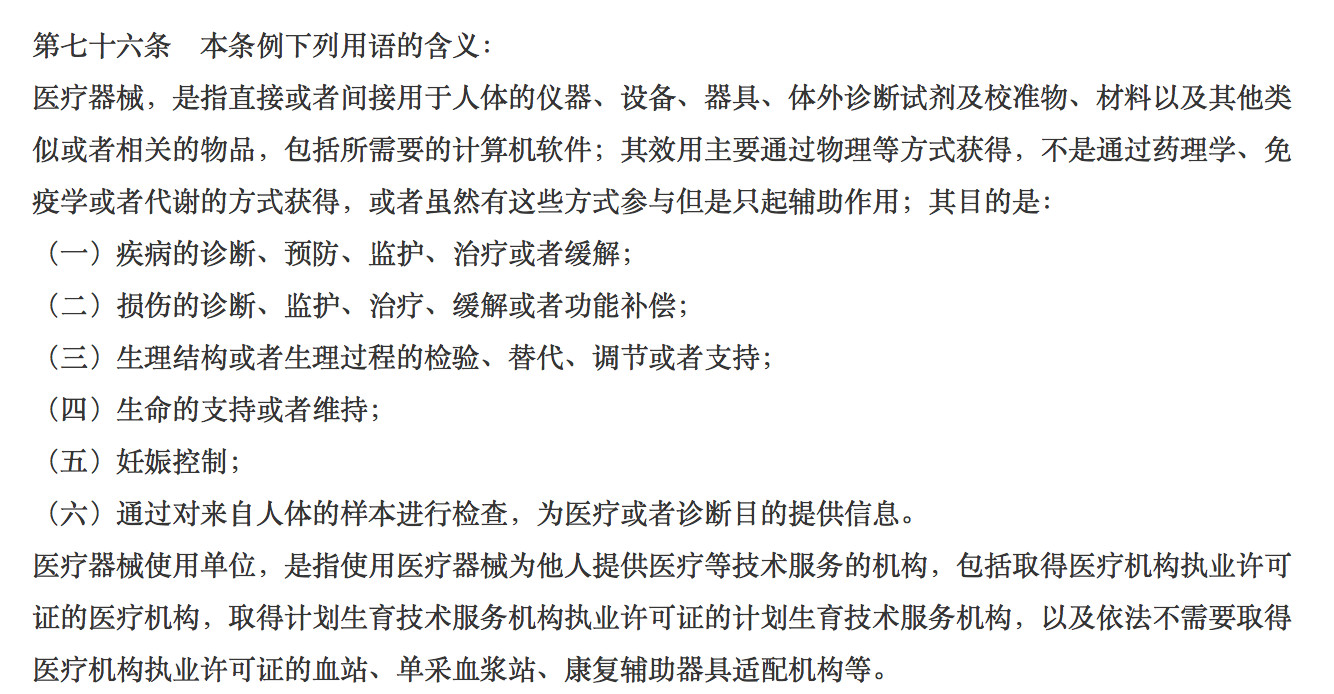 附上医疗器械监督管理条例2019_国务院令680号第七十六条对医疗器械的定义