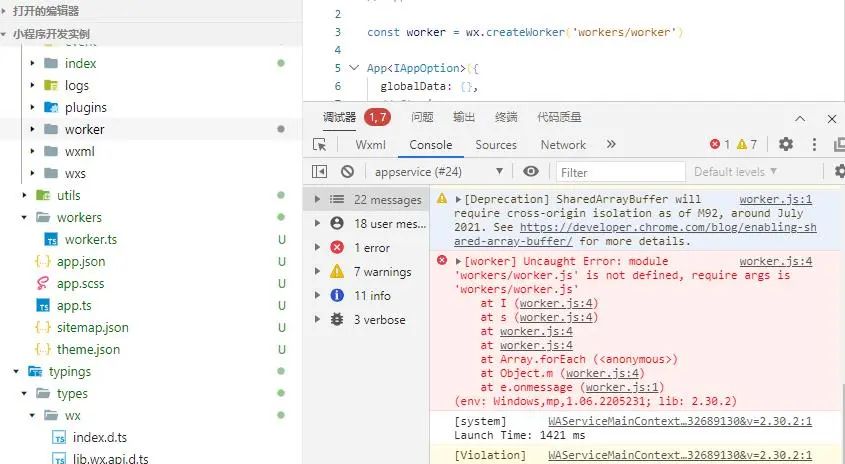 wx.createWorker() 在 app.ts 中调用,我还试了 wx.createWorker('/miniprogram/workers/worker')