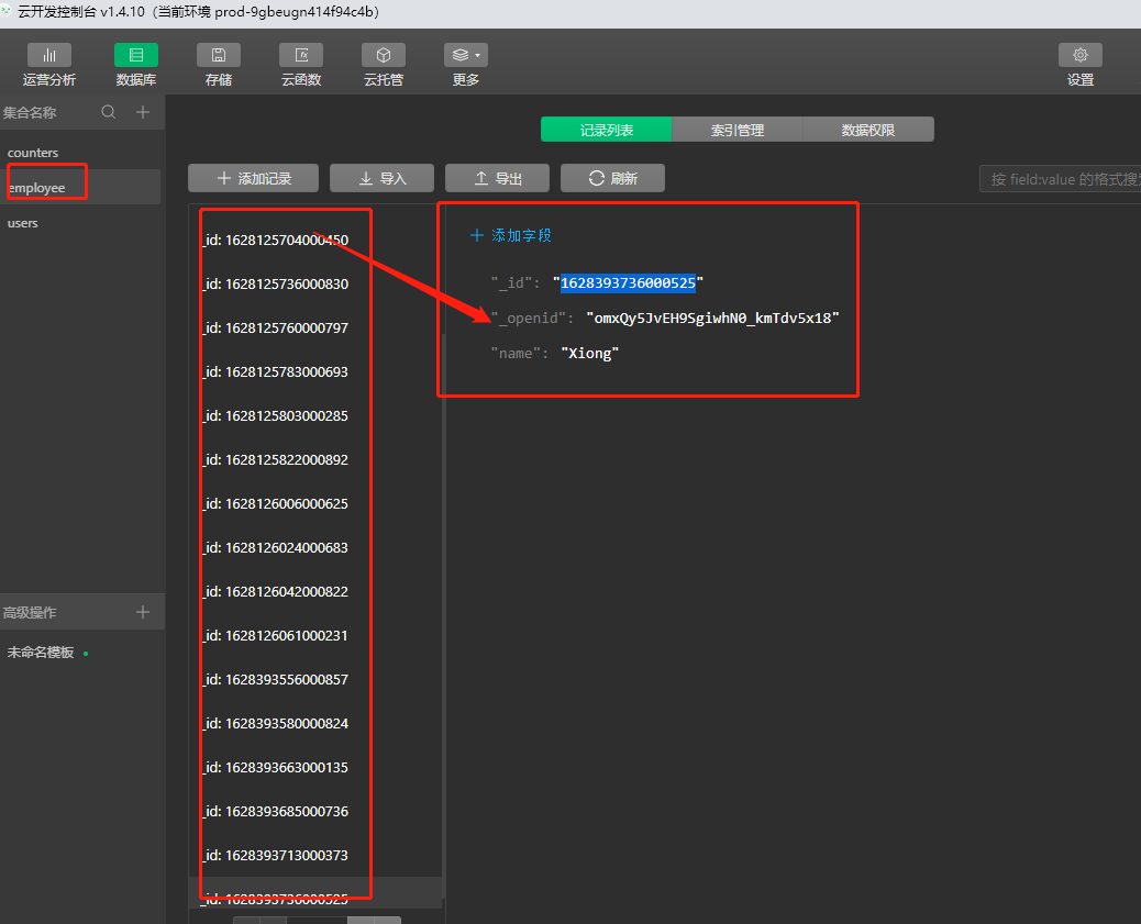 提供云开发数据库中的数据如下: