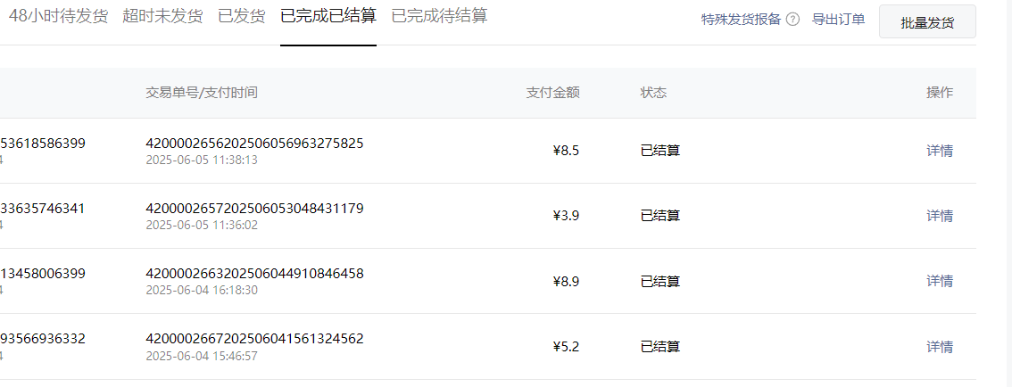 可联系订单管理客服核实,路径:小程序管理后台https://mp.weixin.qq.com/ 支付与交易-订单管理-右上角问号-平台客服咨询