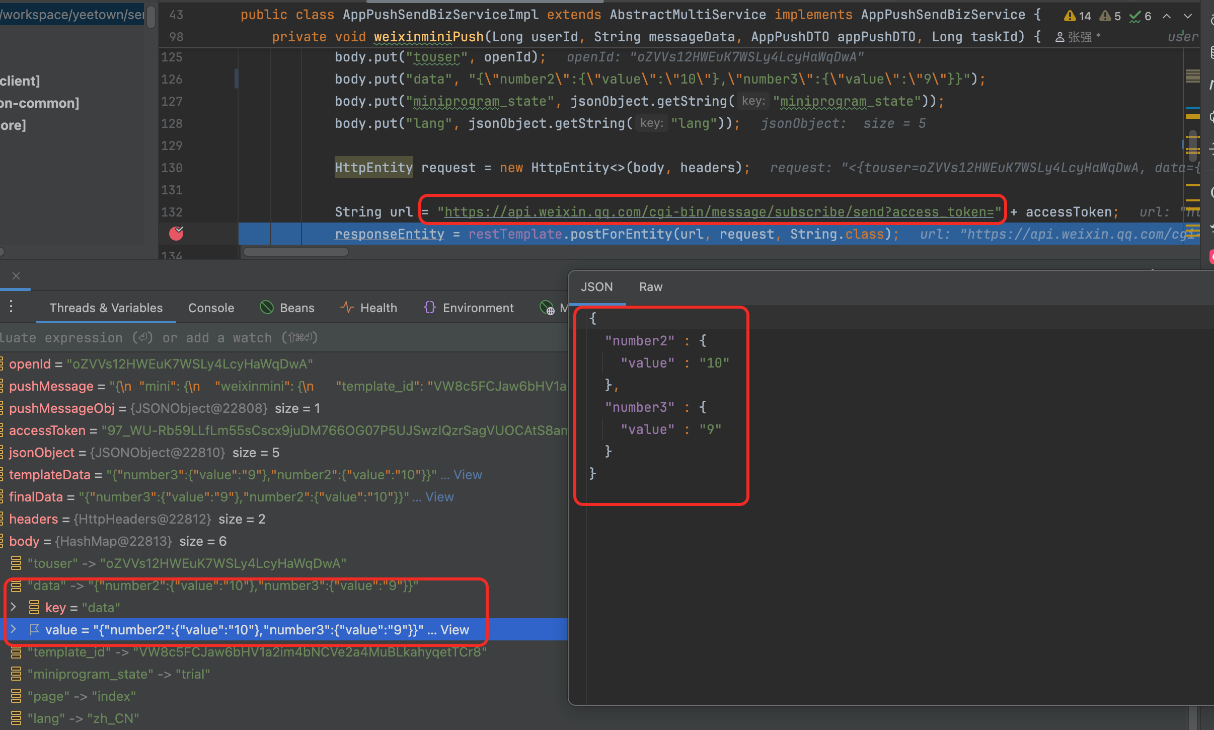 https://developers.weixin.qq.com/miniprogram/dev/OpenApiDoc/mp-message-management/subscribe-message/sendMessage.html 请求体的data.number2.value已经按照要求传输了,还是报47003参数错误 异常,为什么