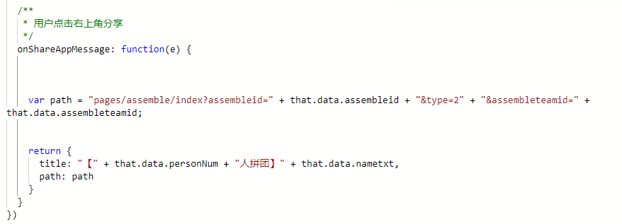 B、分享页面路径为:pages/assemble/index?xxx=xxx