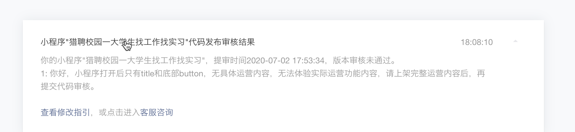你好,经核实,小程序真机复测后,可以体验到具体的运营内容,请重新提交代码审核。