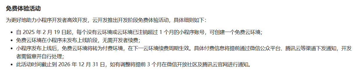请问这个云环境在小程序发布上线之前是永久免费的吗?还是截止到2026年9月份就转为收费或不再提供了?