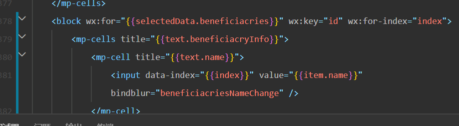 wx:for是否已指定wx:key,并且取data-index的方法建议应该是e.currentTarget.dataset.index(避免内部有子元素的情况下取不到data)
